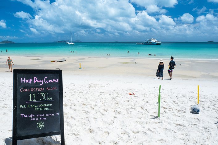 To keep Whitehaven Beach, pristine and as untouched as possible there are no shops or cafes and only limited toilet facilities. Sandwiches and snacks can be purchased onboard the vessel.